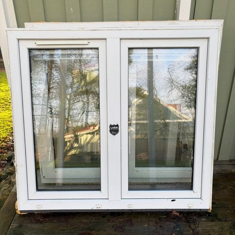 Trippelglasfönster med två fönsterblad i vit färg Ena bågen har en sprucken ruta som lätt kan tas bort, eller byta hela kassetten , därav priset. Passar exempelvis till altanen eller förrådet efter reparation av glaset. Fönstrertventil trasig ,kan köpa var som helst.priset ca 130 kr.