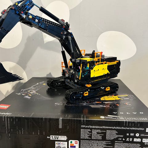 LEGO Technic EC500 grävmaskin i svart och gul färg. Modellen är detaljerad med rörliga delar och är en del av LEGO:s Technic-serie.