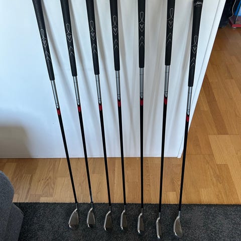 Callaway Mavrik järnklubbor (6-P) dam med grafitskaft. Fyra år gamla och omgreppade förra året.