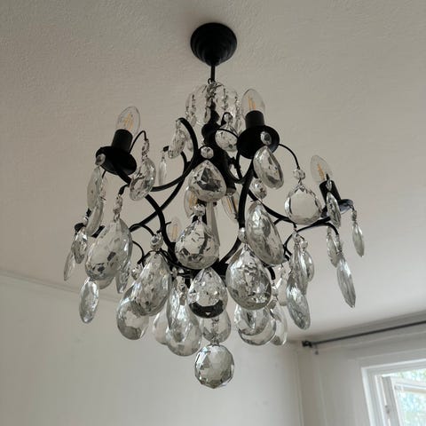 Vacker kristallkrona, med fem ljushållare, för stor för min bostad,eller säljs till högstbjudande