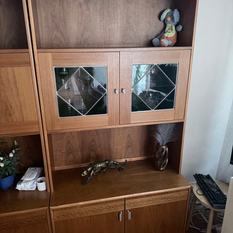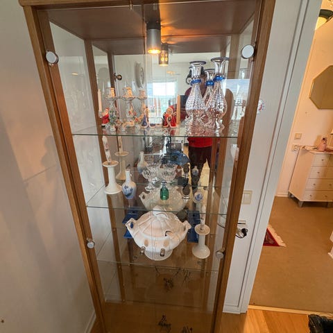 Vitrinskåpet har lite repor på sidan, men inget som inte bör gå att fixa.