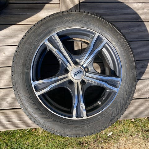 Väldigt fint skick på fälgarna, endast minimalt skrap på en fälg. Tråkiga centrumkåpor men de går ju att byta så blir de nästan som nya.