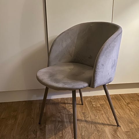Sammets stol från Söstrarne grene. Grå. Fint skick en liten fläck på stolsitsen . Se bild . Ny pris 798kr. Finns på väster i Hässleholm. Har Swish