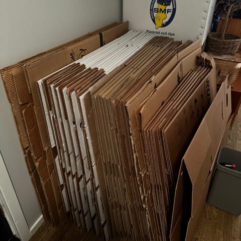 75 flyttlådor, samtliga från Bauhaus. Använda vid 1-2 flyttar. Majoriteten endast vid en flytt och i gott skick. Enstaka något sämre skick men utan någon påverkan på funktion då stabila lådor med fem lager.