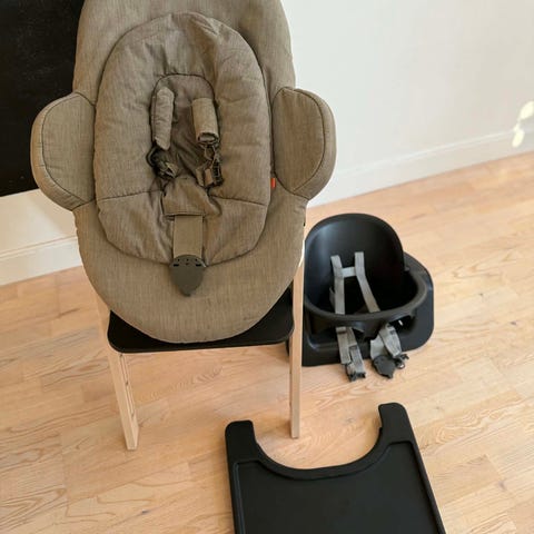 Stokke matstolstillbehör i form av babysits med sele. Delarna är avsedda för användning med Stokke trip trap (nyare modell) för spädbarn. Övriga delar sålda.