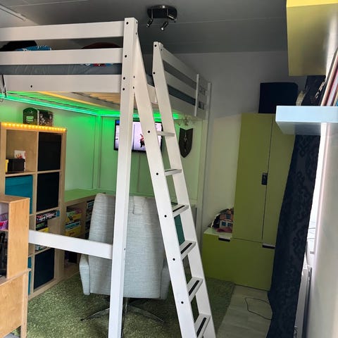 IKEA loftsäng i använt skick, lite klistermärken Finns, men har mer att ge.