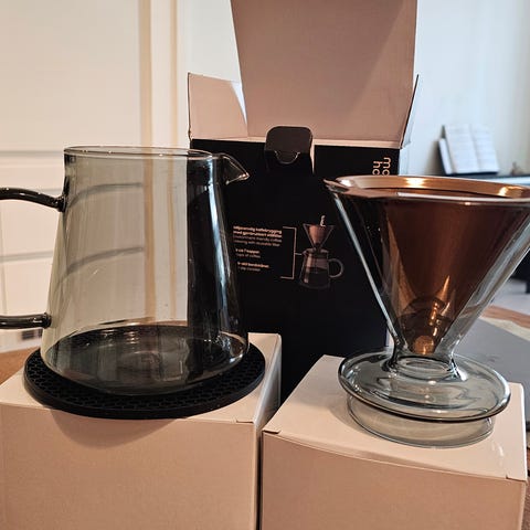 Bodum kaffebryggare i form av en vakuumbryggare/sifon i glas med svarta plastdetaljer. Består av två glaskolvar, handtag, stativ och inner-rör för bryggning. Passar för bryggning av kaffe i hemmet eller på kontor där man vill använda vakuummetod. Bryggaren används på värmekälla enligt tillverkarens anvisningar och är avsedd för användning med malet kaffe. Glasdelarna är genomskinliga så att bryggprocessen kan följas visuellt.