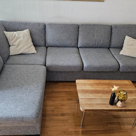Säljer en rymlig och modern divansoffa i ljusgrå tyg från Svenska Hem. En väldigt bekväm soffa med gott om plats för hela familjen.