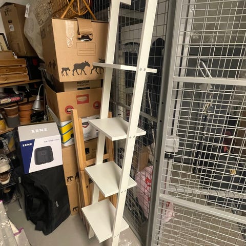 Fin, vit hylla i form av stege