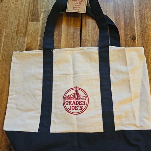 Multiple mini limited edition pastel Trader Joe’s tote bags for 200kr per item.