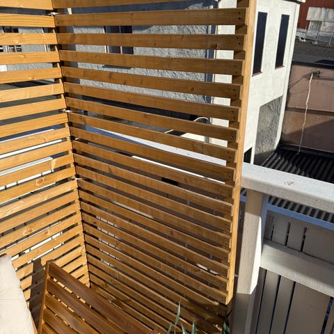 Skärmvägg för utomhusbruk i flätad pil med ram inköpt på Hornbach 2023 i gott skick (kostade 649kr st).