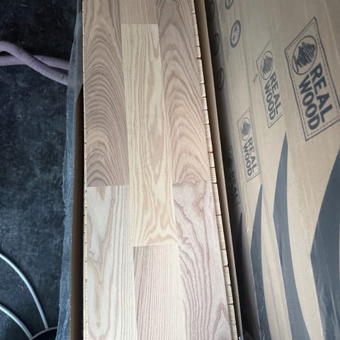 15×151×2420mm. Golvet består av plankor i ljus ek med synlig trästruktur (se bild 2 från vårt kök). 14 paket i originalförpackningar (se bild 1 och 3) Nypris från ca 20 000 kr.