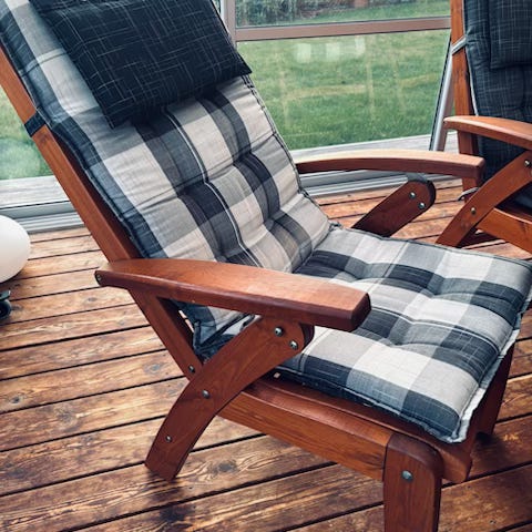 Fällbara klappstolar för utomhusbruk i trä och aluminium. Troligtvis från 50/60-talet. Rost förekommer men är fullt fungerande.