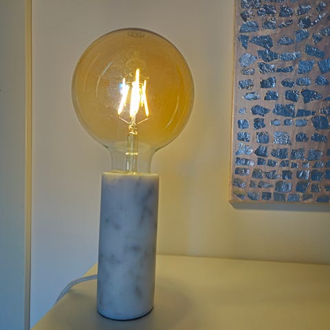3 stycken aldrig använda glödlampor i globmodell. En bordslampfot. Felköp.