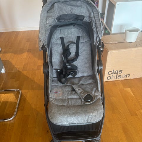 Britax barnvagn av sulkymodell i grå textil med svart chassi.