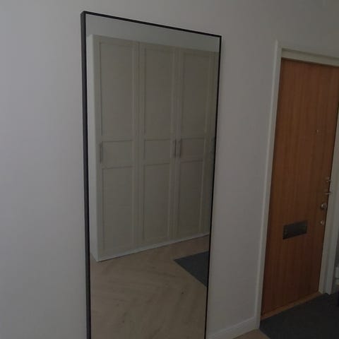 80x220 cm är stor spegel. Finns små skav, men kan slipa på.