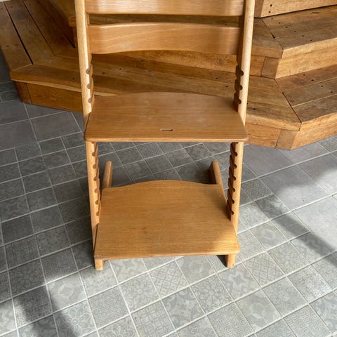 Barnstol som är justerbar i både sits och fotstödet. Går att justera både sittplatta och fotplatta i höjd utan verktyg för att passa barnet under tiden barnet växer. Passar under många år för barnet vid matbordet. Stolen i bra skick och har många år kvar att glädja barn. Bättre ben än stolen Stokke där Stokkes benen ofta träffar föräldrars tår. Kan kompletteras med en bygel och säkerhetssele för de minsta barnen. Nypris idag på AJ Produkter är 4.119kr.