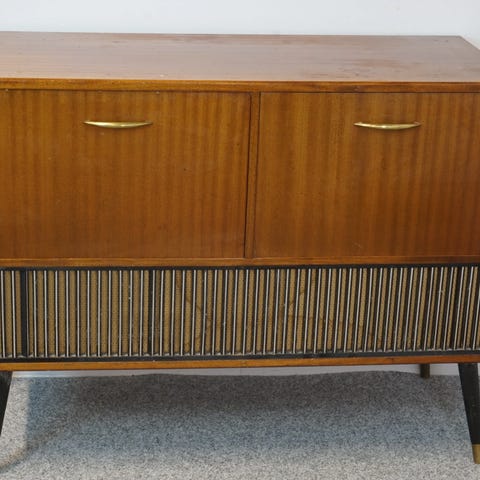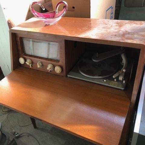 Vintage stereobänk, 70-tal Mahogny