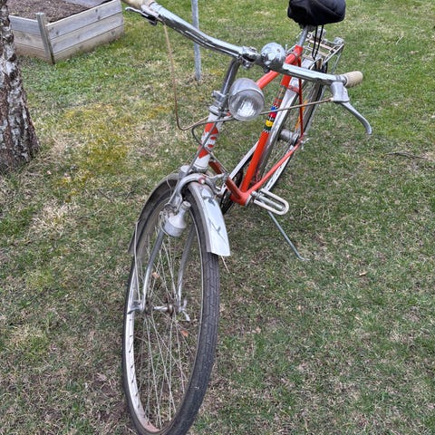 En trevlig stadscykel med fotbroms och handbroms. Cykelkorg och originallås.