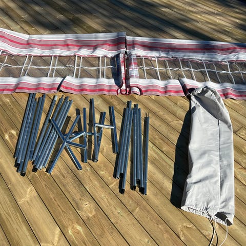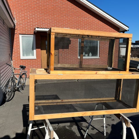 Ett jättefint vindskydd vind skydd Tror det är svenska tält Ca 5 meter höjd 1,30cm med fönster Samt alla pinnar och överliggande Använt ett par ggr Pris endast 1000kr