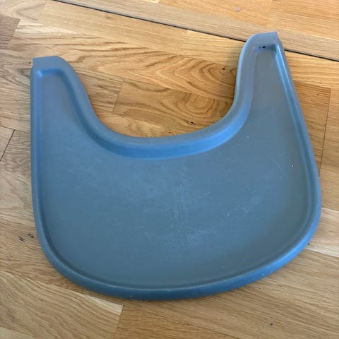Stokke matstol tillbehör bestående av bricka och bygel i grön och vit plast. Delarna är avsedda att användas tillsammans med en matstol från Stokke för att ge barnet en stabil sittplats och en egen yta för mat eller lek. Setet inkluderar bordsskiva, sittbricka och bygeldelar i matchande färg.