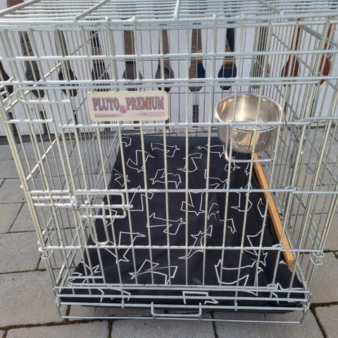 Transportbur, mått 58x36x34, som kan öppnas både på kortsidan och i taket. Använd fåtal gånger. Diverse nya tillbehör till kaniner, bla matskålar, vattenflaskor, toalett, selar, klosax och lektunnel.
