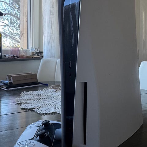 Sony Playstation 5 digital i bra skick! DualSense-handkontroll i röd. Säljer den då jag ej spelar längre. Funkar utmärkt och haft den sen ny, har spelat 2 år totalt och aldrig haft något problem eller liknande.