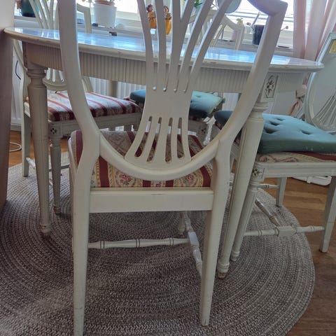 Mindre limrester finns kvar på hörnen efter tidigare monterade hörnskydd.