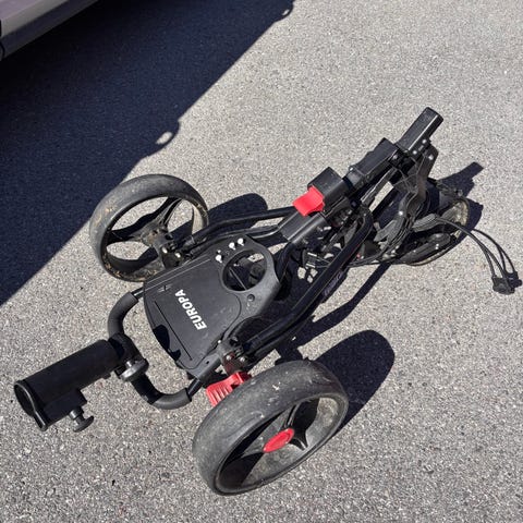 Tar liten plats och kan med lätthet förvaras i små utrymmen. Fälls ihop med enkla handgrepp. Effektiv fotbroms. Stora hjul som gör den lättkörd på banan.
