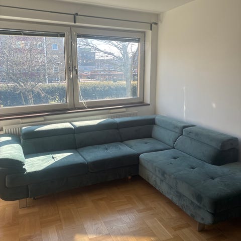 Soffan är rymlig och passar perfekt både som soffa och extrasäng. Den kan enkelt göras om till säng och har praktiskt förvaringsutrymme.