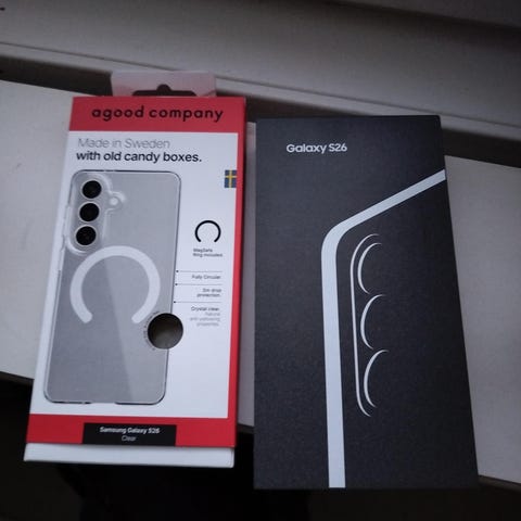 En helt ny Samsung Galaxy S26 med tillhörande skal säljes