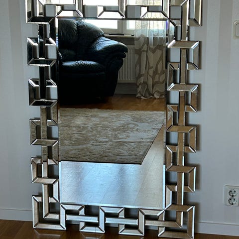 Svart spegel rektangulär med dekorativ ram