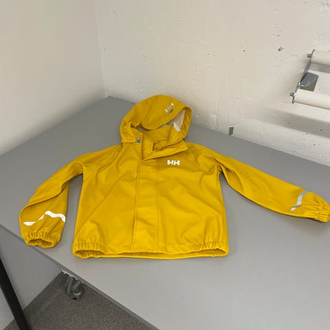 Helly Hansen jacka för barn i storlek 140. Färg gul och material i polyamid. Jackan är unisex och har huva samt dragkedja framtill. Modellen har fickor, varav en märkt med "packable pocket" för att kunna packas ned i sig själv. Passar som ytterjacka för barn i ungefär storlek 140.