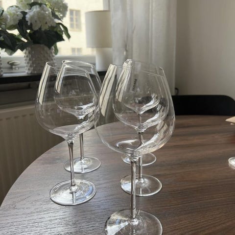 Riedel vinkaraff i glas. Karaffen har en organisk, droppformad design med smal hals och bredare botten. Passar för dekantering och servering av vin vid bordet eller på serveringsbänk. Lämplig för hemmabruk vid måltider eller vid servering av vin vid särskilda tillfällen.