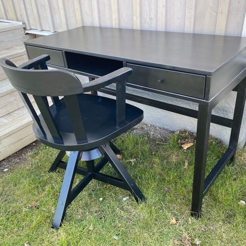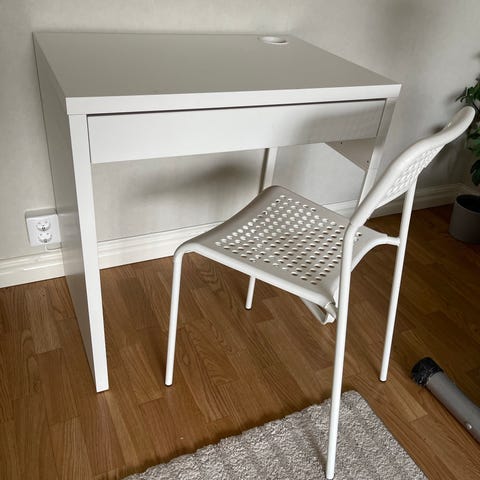 Säljer ett relativt nytt skrivbord som knappt är använda. Skrivbordet är i jättefint skick, stolen har någon fläck, se bild. Skrivbordet och stolen är från IKEA, designer vet jag inte.