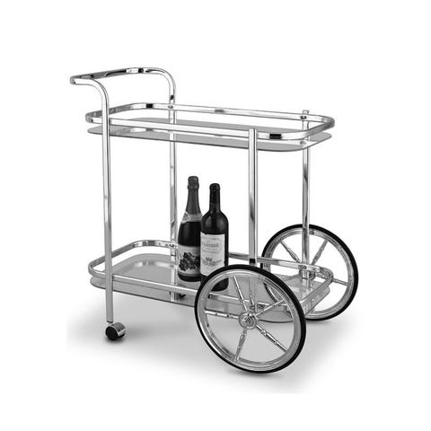 Serveringsvagn i robust konstruktion med stomme i blåmålad metall och överdel i mörkbetsat trä. Vagnen har stora hjul i metall och nätkorgar undertill som ger extra förvaringsutrymme. Passar som displayvagn i butik, serveringsvagn i café eller som avlastningsbord i större kök och matsal. Designen ger en industriell och rustik känsla med kombinationen av trä och metall.