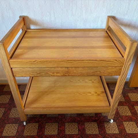 RETRO Serveringsvagn i ljust trä, med utdragbara lådor. 1970-tal.