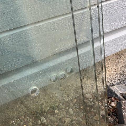 Glasräcke med glaspartier, stolpar och fästen. Glaset är genomskinligt och stolparna är i svart metall. Delarna kan användas till altanräcke eller liknande konstruktion där man önskar ett räcke med glasfyllning. Exakta mått och antal sektioner behöver kontrolleras vid hämtning eller enligt säljarens uppgifter. Glaset är 112 cm brett och 97 cm högt. 3 år gammalt. Nypris ca 24000kr