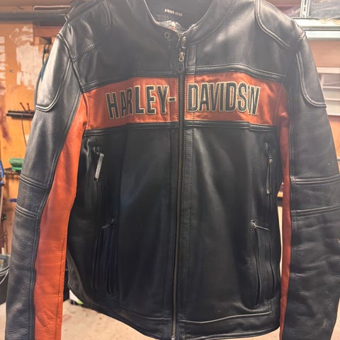 Harley-Davidson Screamin’ Eagle läderjacka för herr i svart färg, storlek L. Jackan är tillverkad i läder och har broderade/logotryckta Screamin’ Eagle-detaljer framtill, på ärmarna och axlarna. Modellen har hög krage, dragkedja framtill samt fickor med dragkedja. Passar som motorcykeljacka eller vardagsjacka i kraftigt läder.