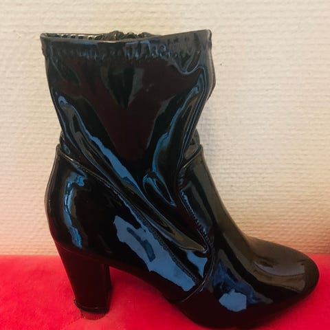 Filippa K klackskor i storlek 36. Svarta klackar i mocka med smal hög klack och ankelhög modell. Skorna har dragkedja på sidan för enklare av- och påtagning. Levereras med skopåse och originalkartong enligt bilder.