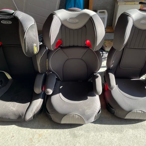 Graco bälteskudde med ryggstöd och nackskydd . För att barnet ska sitta säkert innan och ha bältet på rätt ställen.
