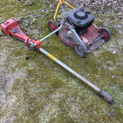 Atco gräsklippare med cylindrisk klippenhet och uppsamlare framtill. Vad jag vet komplett kvalitetsmaskin, men som behöver en genomgång. Har förvarats inomhus i över 30 år. Populärt renoveringsobjekt.