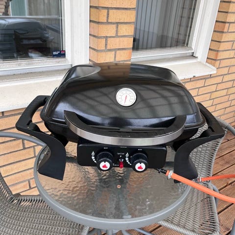 Stor gasolgrill (120 cm) för inbyggnad säljes. Fem brännare. Ställningen på bilden (exkl. stenskiva) ingår om det är av intresse.