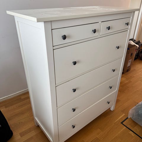 Säljer en praktisk byrå med 6 lådor. Funkar bra till kläder eller annan förvaring.