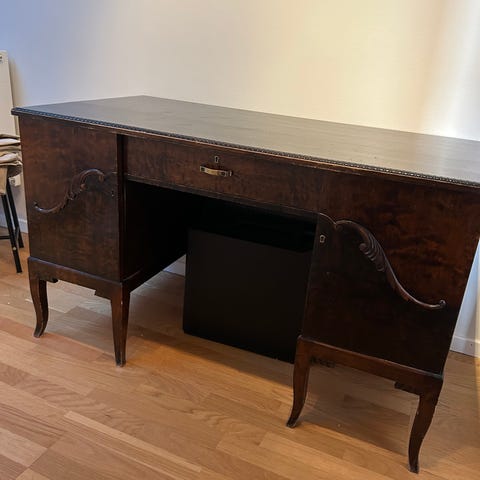 Svart skrivbord i klassisk stil. Lite märken och skrap, men del av stilen.