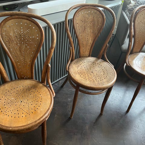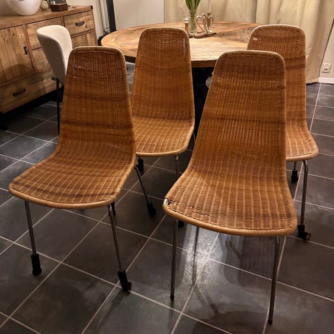 Tre riktigt fina karmstolar i rotting/bambu. Fina detaljer. 400kr / stol eller 1000kr för alla tre.