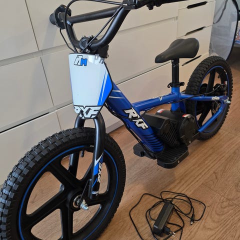 Helt ny 16 tum elcykel perfekt för mindre barn som vill köra elcykel. Följer med laddare och nyckel är i nyskick.