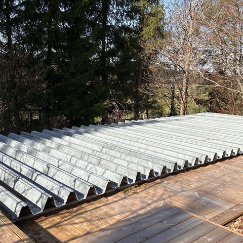 Pooltak Aqvisdeck Nivå 3,5x7m. Inköpt våren 2023. Ej inklätt i trätrall, vilket gör taket i nyskick för den som vill montera trall ovanpå. Listpaket ingår.