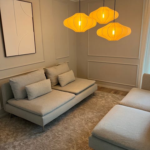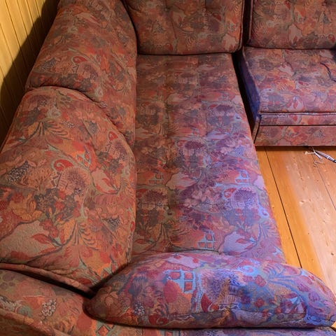 Ena schäslongen har två defekter på tyget, se bilder. Går att ta av och tvätta tyget.
