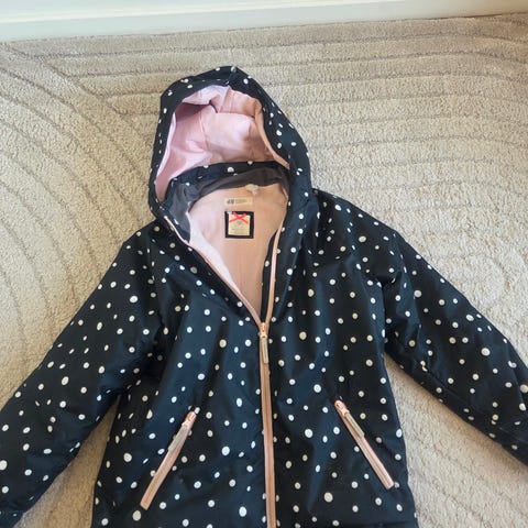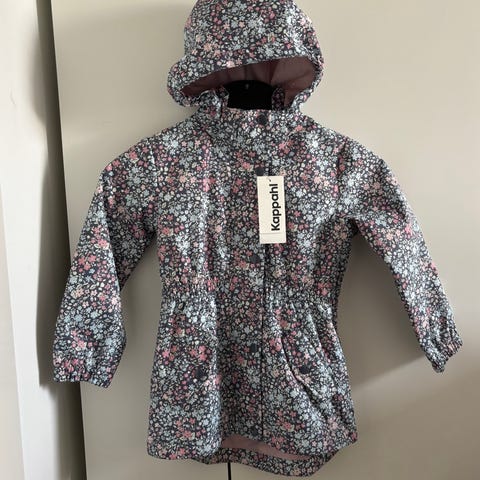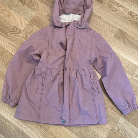 Skickar med regnkläder storlek 120 på köpet. Lite skavt i rumpan på byxorna.